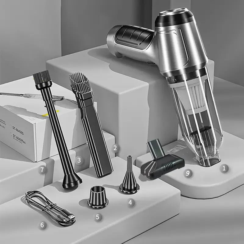 5. **All-in-One Cleaning Tool**: Equipped with cleaning accessories and a 2-in-1 vacuum and blower , this small appliance is a multi-purpose cleaning solution. Its strong suction and compact design make it a powerful yet portable choice for car detailing and maintenance.
