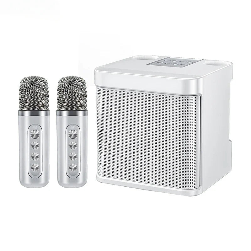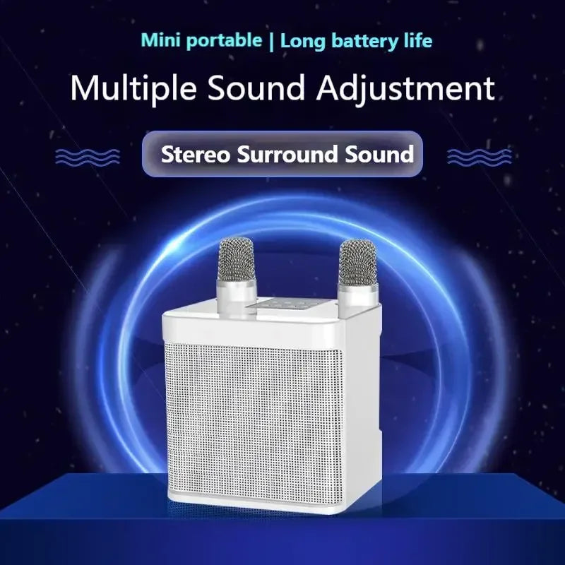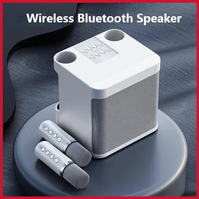 10W Powerful Wireless Portable Dual Microphone Bluetooth Sound Outdoor Family Party Karaoke Subwoofer Boom Box with 2 Microphone